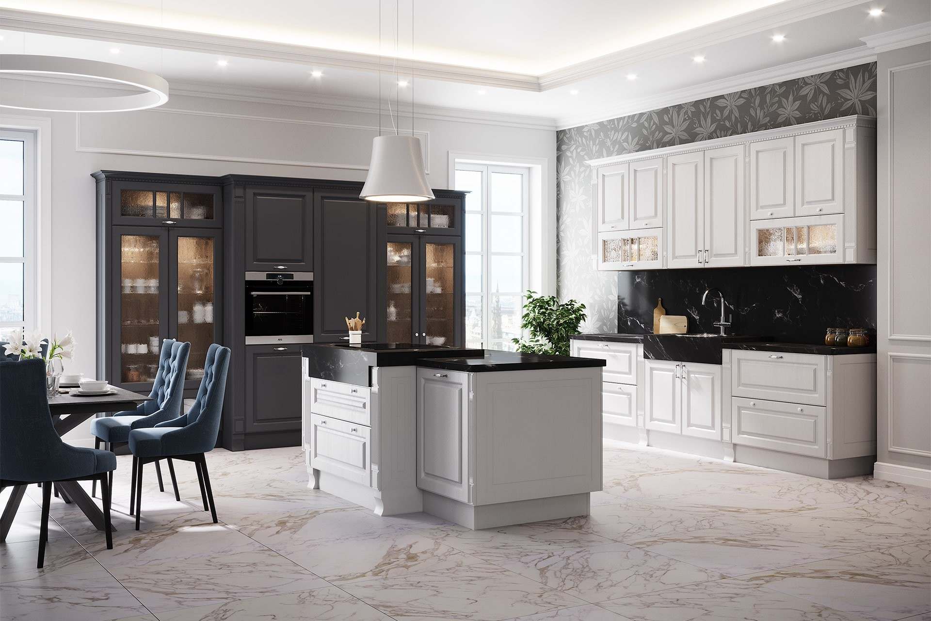 • Классическое сочетание «темный низ, светлый верх» – вне времени. Сделайте темными только нижние фасады кухни и детали на верхних секциях.